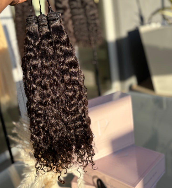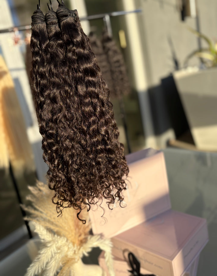 Our Raw Indian Curly Bundles are the fullest, most natural curly bundles you’ll find. Sourced directly from India, these luxurious curls are bold, bouncy, and sure to make a statement. Each bundle is 100% raw and unprocessed, giving you unmatched volume and a soft, natural finish. With proper care and maintenance, these curls will maintain their beautiful pattern and last over 2 years making them a long-term investment in quality and style.